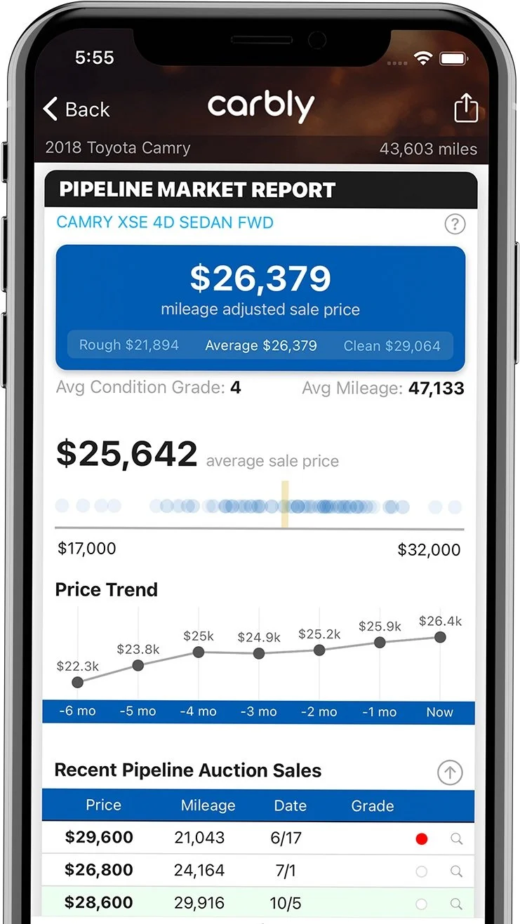 PMR is the only book value exclusively based on transactions from EdgePipeline.com, one of the largest online destinations for dealers sourcing wholesale inventory. PMR provides buyers and sellers with a targeted data point to price and buy inventory from auctions listed on EDGE Pipeline. PMR is co-developed by Auction Edge and Carbly.